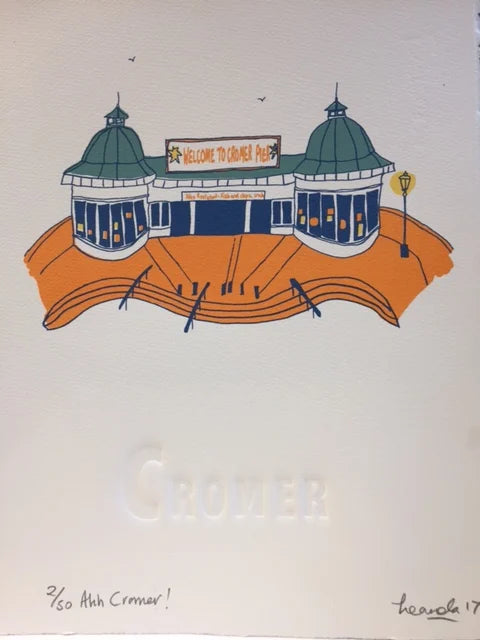 A print capturing the top of the Cromer Pier. Drawn during my stay in Cromer earlier this year, this was originally printed as part of the 'A to Z of North Norfolk' Collection.