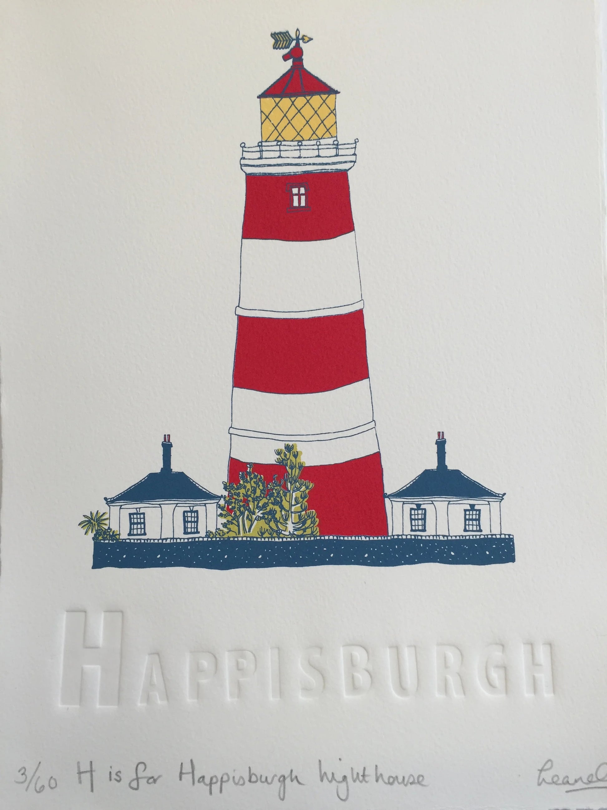 A print of the distinctive and beautiful Happisburgh Lighthouse. Originally printed as part of the 'A to Z of Norfolk' Collection.