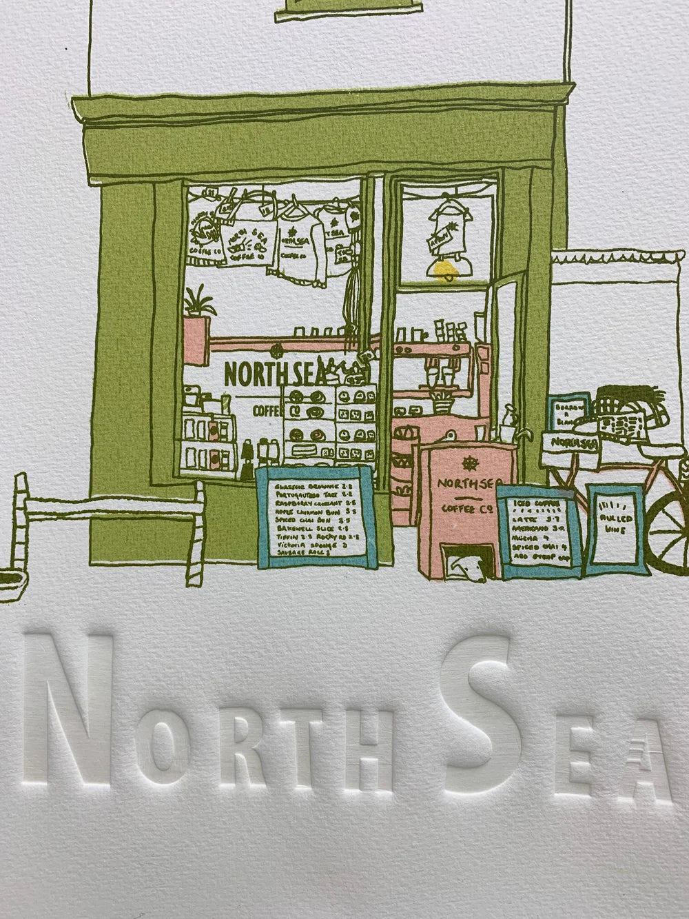 The latest edition of the North Sea Coffee print. It's becoming one of those "must-visit" places located on the sea front, with great views, great people and great coffee! Originally printed as part of the 'A to Z of North Norfolk' Collection.