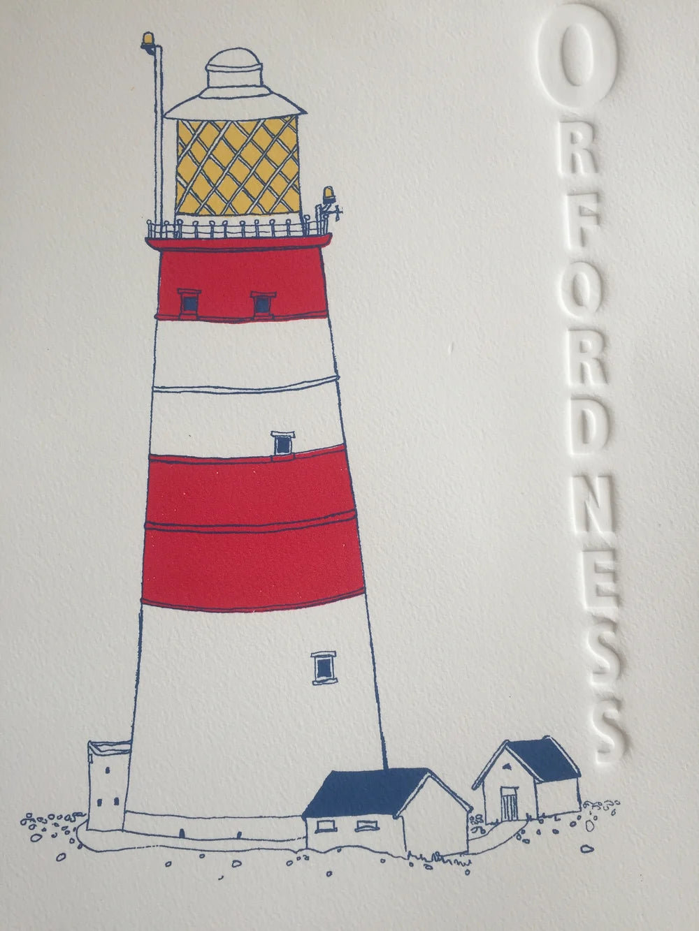 A print of the historic Orfordness lighthouse that was sadly demolished in 2020 due to sea erosion. Originally printed as part of the 'A to Z of Suffolk' Collection.