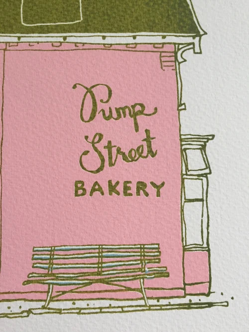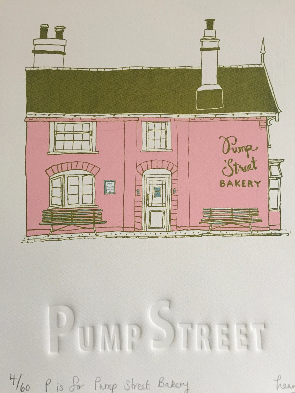 A print of Pump Street Bakery, a lovely bakery in Orford! Originally printed as part of the 'A to Z of Suffolk' Collection.