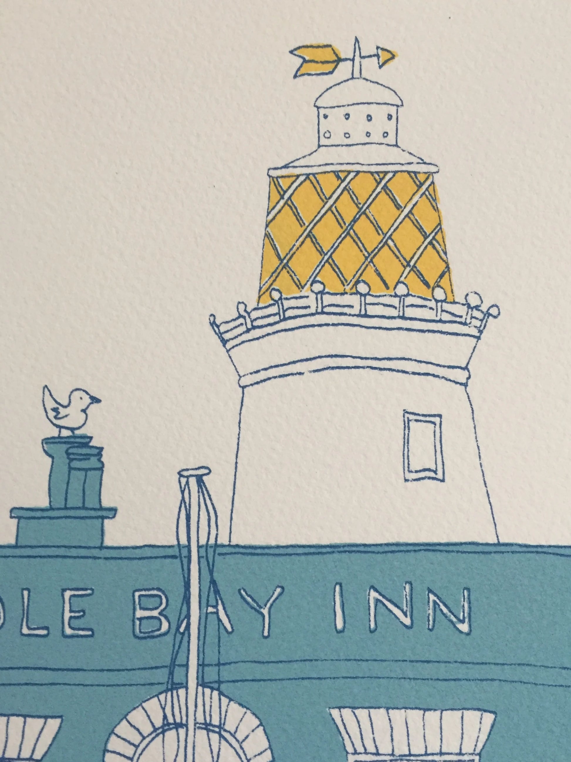 A print of Sole Bay, such a wonderful position - beautiful lighthouse and houses nestling round a lovely pub! Originally printed as part of the 'A to Z of Suffolk' Collection.